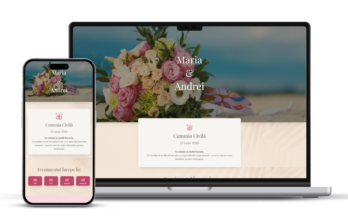Invitații digitale tip website pentru nuntă